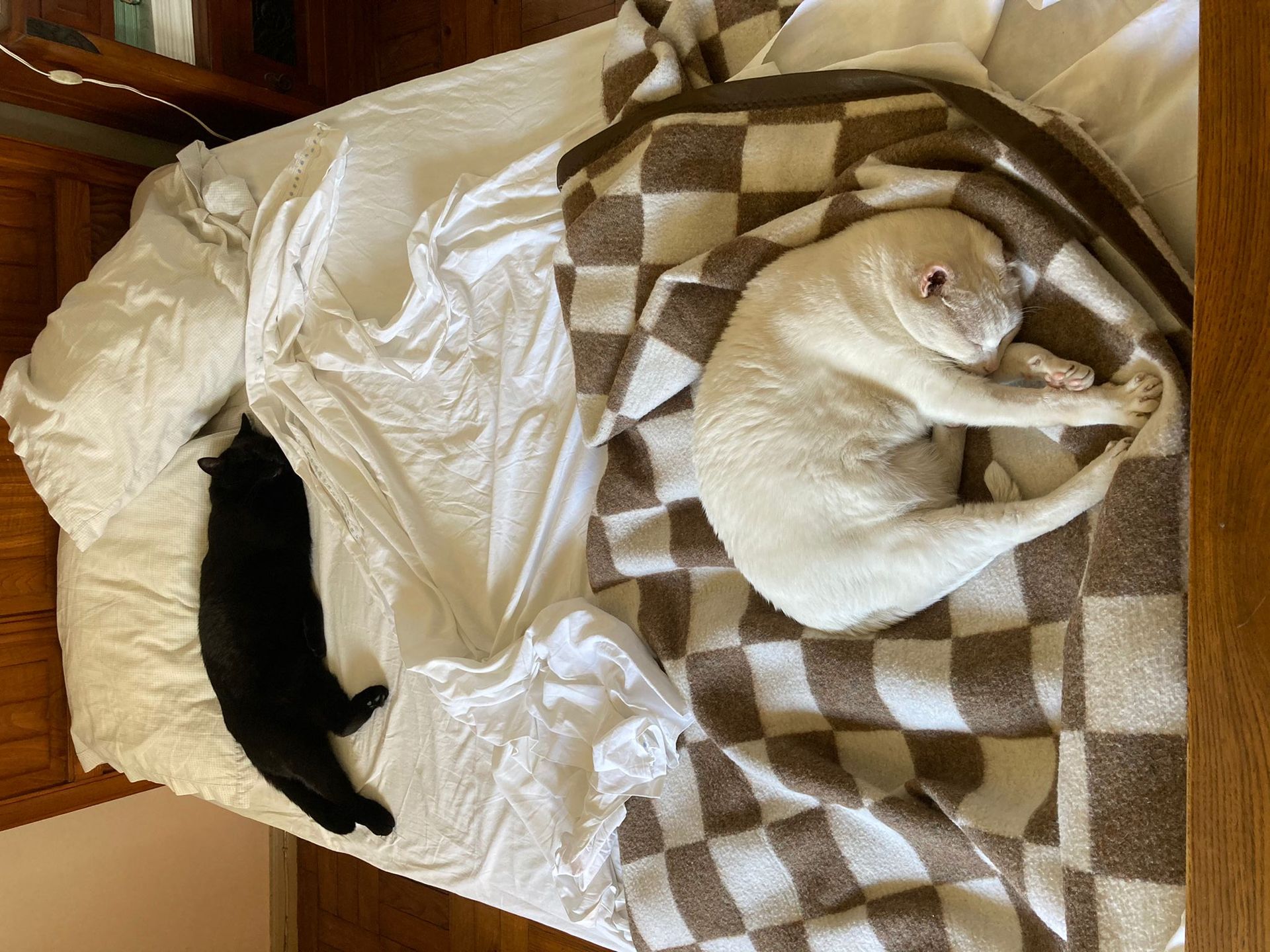 Tive vários gatos quando era criança. E também coelhos, pássaros e uma tartaruga chamada Mimi! Neste momento não tenho animais de estimação mas na altura em que fiz o livro Miau! vivia com os gatos da minha irmã, o Muji e o Miso. Um é branco e o outro é preto e foram uma grande inspiração para o livro!