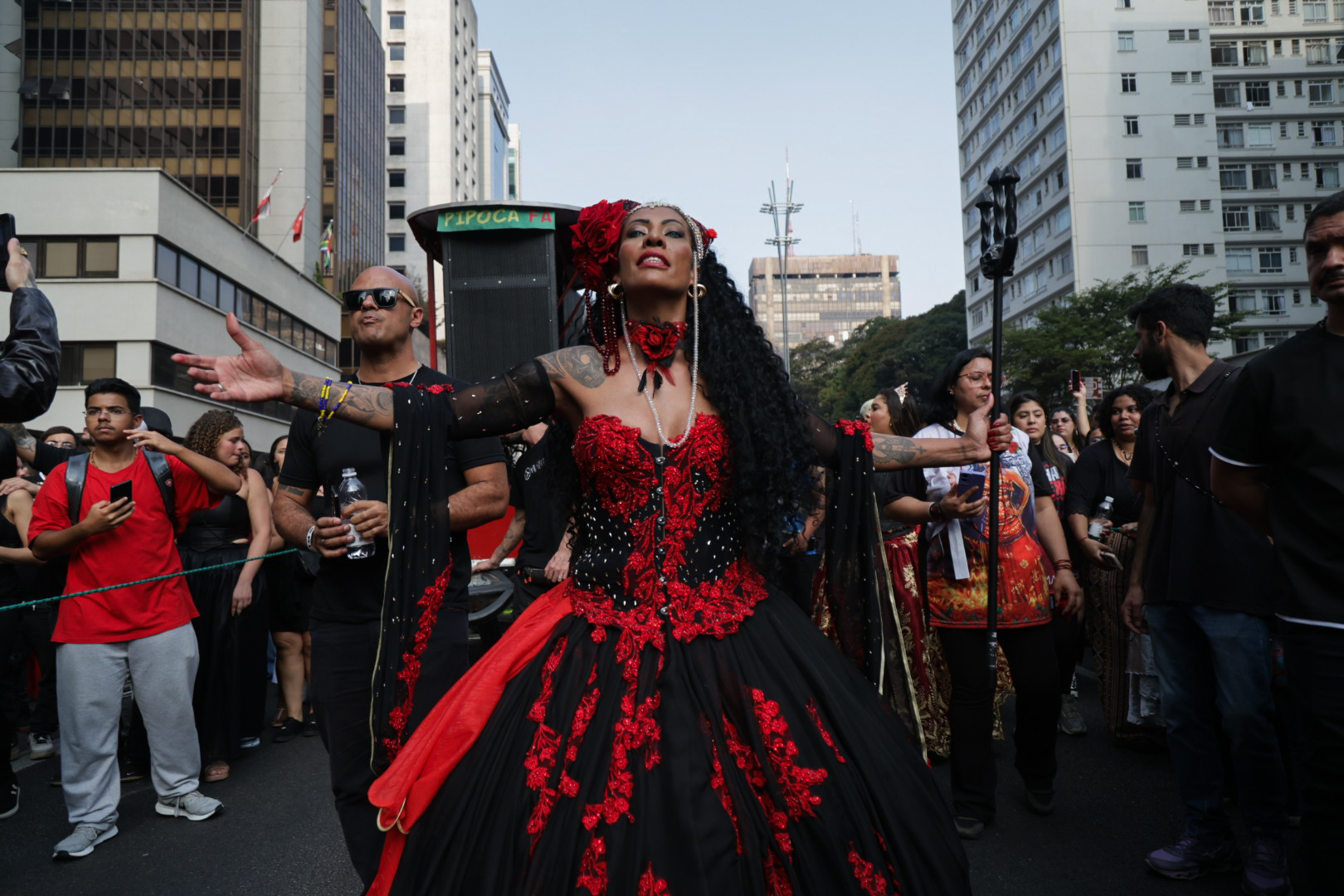 SÃO PAULO (SP) - Devotos de religiões de matriz africana participam da terceira marcha para Exu, na Avenida Paulista. Foto por Fraga Alves.