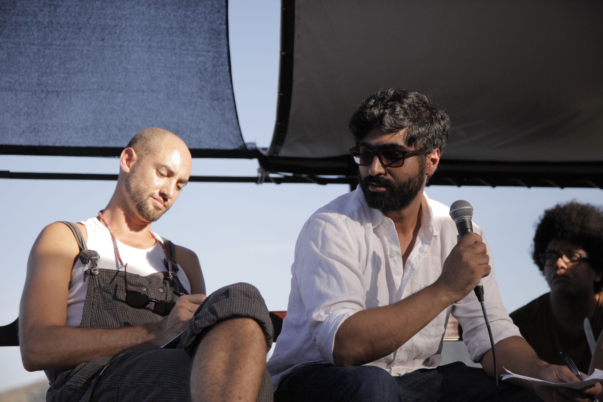 Asad Haider, Débora Baldin e Jones Manoel na FLIPEI 2019, em Paraty (RJ). Foto: Luiza Queiroz.